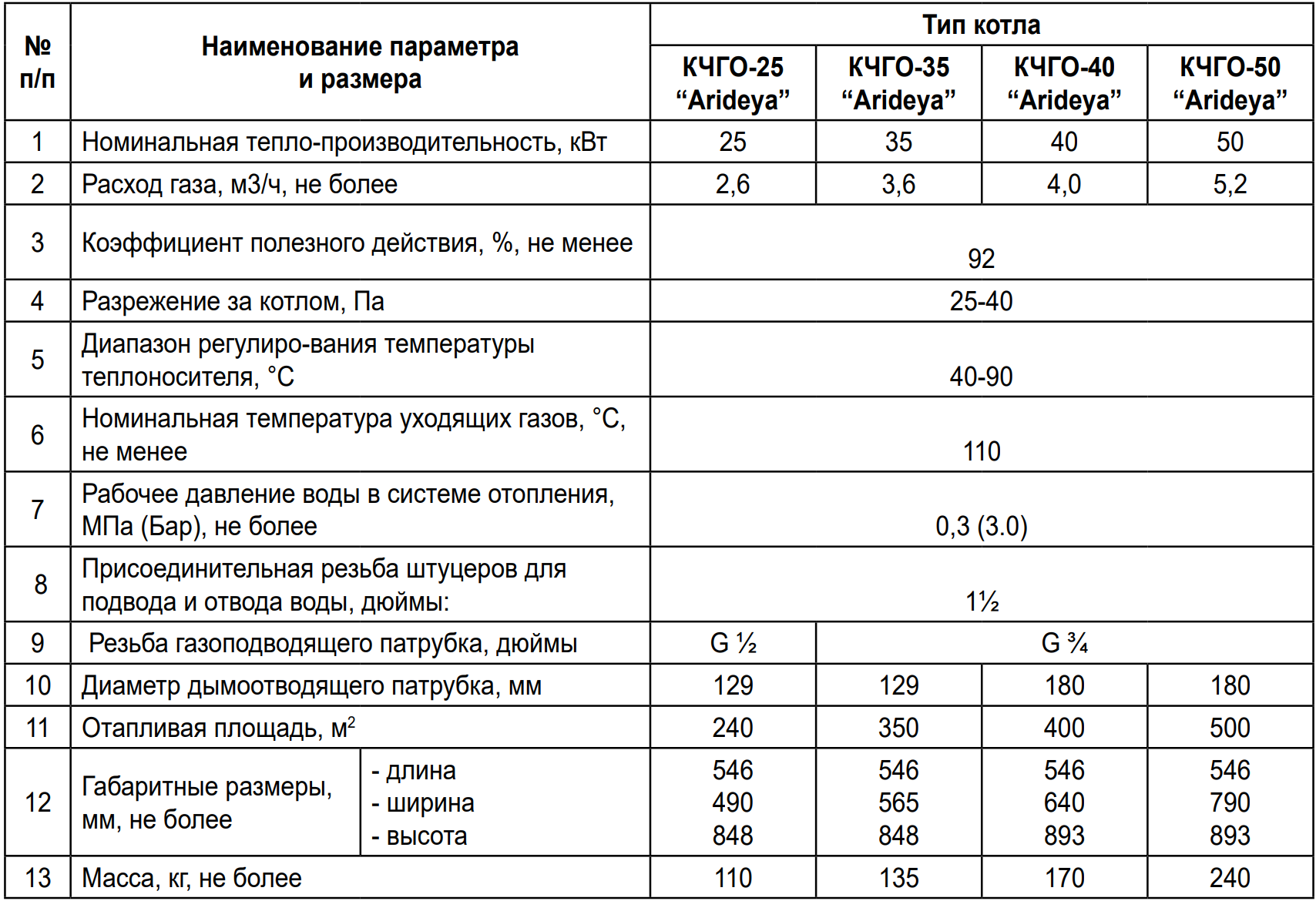 | Модель котла | Arideya КЧГО |