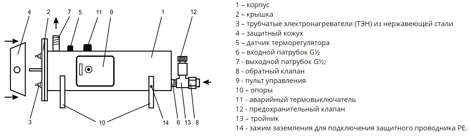 - обратный клапан страхует от включения водонагревателя при отсутствии воды, что в свою очередь может привести к сгоранию ТЭНа. Обратный клапан пропускает воду только внутрь водонагревателя, исключая ее поступление обратно в водопровод при отсутствии напора;