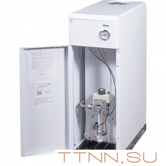 Автоматика котла Сибериа обеспечивает: стабилизацию давления газа на основную горелку, поддержание заданной температуры воды, включение основной горелки при наличии пламени на запальной горелке, выключение аппарата при погасании запальной горелки, при отсутствии разрежения в дымоходе.