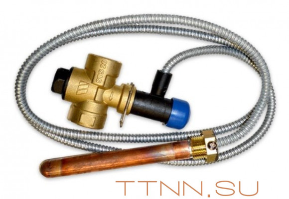 Предохранительный клапан Watts (Ваттс) STS.20S (L=1300мм, T=93°С) выполнен из качественных материалов, гарантирующих надежность и долговечность устройства. Конструкция позволяет предотвратить перегрев твёрдотопливного котла путем сбрасывания горячего теплоносителя для замены на холодный.